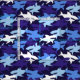 Cooles Tarnmuster beim Hai, das durch das freie Schwimmen von Silhouetten in Blau und Weiß entsteht. Es macht Spaß, jedem Zimmer eine dekorative Touch des Meeres hinzuzufügen, und das ist toll für jeden Hai-Liebhaber!