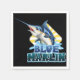 Blaumarlin-Fischhemd mit Kartonzeichen Serviette