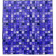 Blaues Mosaikmuster, bestehend aus kleinen quadratischen Fliesen in verschiedenen Blau- und lila Farbtönen, wodurch eine optisch interessante Oberfläche mit glänzenden und matten Oberflächen entsteht.
