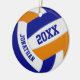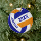 Dieses sportliche Volleyballteam in Farben für Jungen und Mädchen präsentiert einen realistischen Volleyball mit blauen, orangefarbenen und weißen Paneelen - nach dem Namen des Athleten und Jahr auf der Vorder- und Rückseite des Ornaments - von katz_d_zynes