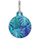 Blau mit lila, tropischen Palmenbaum-Blätter Tier-ID-Tag personalisiert mit dem Namen Ihres Haustieres.