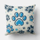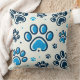 Nahtlose Muster blauer Pfotendrucke auf weißem Hintergrund, perfekt für Heimtierdesigns, Produkte oder Themen, die Tiere und Freundschaft feiern.