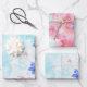 Blaupink-Blume-Muster decoupiert elegant Geschenkpapier Set