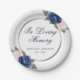Elegante silberne, blumengeschmückte Gedenktafel/Beerdigungstafel mit botanischem silbernen Rahmen mit Aquarellblau und rosa Rosen und Baby-Atem-Blume. Matching-Elemente verfügbar.
