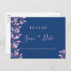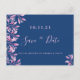 Blaurosa Blütenhochzeit Rettet das Datum Postkarte
