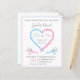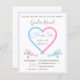 Eine günstige Babydusche oder ein Gender-Angebot laden Sie ein. Auf weißem Hintergrund wird jeweils ein rosa und blaues Flugzeug gesehen, das Rauch in Form eines Herzens in der Liebe freisetzt. Der Schriftzeichen-Text lautet: "Er oder sie, was wird das Baby sein?". Personalisieren Sie Ihre Veranstaltung und Ihre Kontaktdaten.