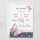 Blütenblauer Rosa Schmetterlinge Save the Date Einladung