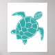 Modernes blaues Schildkrötenposter. Meeresschildkröten symbolisieren oft Ausdauer, viel Glück, Geduld und Weisheit. Und werden oft in Maori und polynesischen Kunstwerken gesehen.