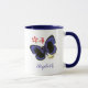 Dieser tiefblütige violette und schwarze Schmetterling stammt aus einer Vintagen Viktorianischen Ära-Kollektion von Motten und Schmetterlingen aus Nordamerika. Die Farbe des Namens auf der Tasse stimmt mit dem lila-blauen der Schmetterlingsflügel überein. Ich Liebe die helle Farbe des Schmetterlings und wie es seine Farben seit über 150 Jahren behalten hat. Es kann immer noch unseren Morgen erhellen!