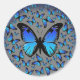 Blauschmetterlinge auf silberem Hintergrund Runder Aufkleber