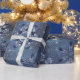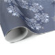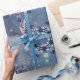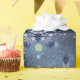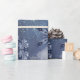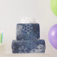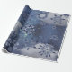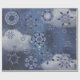 Schneeflocken von blau und weiß auf weißen Wolken unter einem Sternenhimmel.