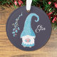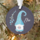 Ein niedliches, rundes Weihnachtsschmuck mit den Illustrationen eines blauen Schwedischen Gnoms, der heiße Kakao trinkt, um sich warm behalten. Personalisieren mit einem Namen. © ArianeC Illustrationen