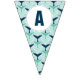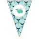 Fahne mit "Babyparty" Benennungen, Blauwalentwurf und Seemusterhintergrund.