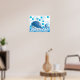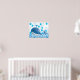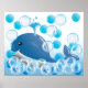 Ein süßer und hellblauer Wal, umgeben von Seifenblasen, sorgt für eine angenehme Atmosphäre im Kinderzimmer oder vielleicht auch für ein Badebad.