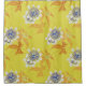 BLAUWEISE BLUME, ORANGE BLÄTTER IN GELBEN DUSCHVORHANG