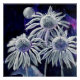 Dieses Blue White Blume Poster besticht durch fette, weiße Türme und einen Vollmond. Der Kontrast zwischen tiefblauem Hintergrund und weißen Sitzbänken ist auffallend und atemberaubend. Das Originalgemälde mit dem Titel Moon Dancers wurde mit Acrylfarben und Acrylfarben hergestellt.