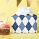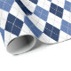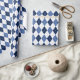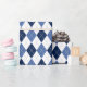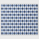 Dieses geometrische Muster-Geschenkpapier zeichnet sich durch eine dunkelblaue, hellblaue und weiße Raute aus, die karierte, graue "Nähte", die sich diagonal über die Diamantformen erstrecken - von katz_d_zynes