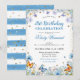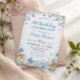 Blauweiße Wildblumen und Schmetterlinge zum Geburt Einladung