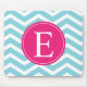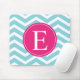 Blauweißes Zickzack-hellrosa Monogramm Mousepad