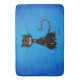 Schwarze Katze Badematte mit einer geriebenen bösen schwarzen Katze, die bereits acht von ihren neun Leben über texturierten blauen Hintergrund gelebt hat. Es ist aber immer noch gemein. Diese böse Schwarze Katze-Illustration ist ein großartiges Geschenk für jemanden, der Katzen und/oder dunkle, grunge und gotische Sachen mag. Das ist eine gemeine Katze. Es hat geschaffen, dass in seinen Augen, dass sagt "Behalt weg" durch Härte und Schmerz und ist immer noch stark.