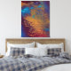 Es handelt sich um eine abstrakte, flüssige Malerei mit aquamarinen, türkisfarbenen, lila, Maronen, Kupfer, Gold und Magenta