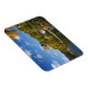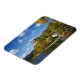 Rechteckiger Foto-Magnet mit Bled-Burg auf einer hohen Klippe über dem Bled-See, umgeben von Bäumen mit Laub in Herbstfarben in einer schönen Herbstlandschaft in Bled, Slowenien.