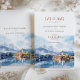 Set die Bühne für eine zauberhafte Hochzeit mit dieser "Save the Date" Karte mit einer wunderschönen Aquarellbild des Bled-Sees in Slowenien. Das Design fasziniert die ruhige Schönheit der Bled Island mit ihrer ikonischen Kirche, umgeben von reflektierenden Seen und schneebedeckten Bergen im Hintergrund. Die Farbpalette der Karte verbindet sanfte Blau- und Weißtöne mit warmen Herbsttönen und schafft eine romantische und ruhige Atmosphäre. Elegante Typografie in einem Mix aus modernen und Script-Schriftart fügt dieser charmanten Einladung Raffinesse hinzu, die sich ideal für Paare eignet, die eine malerische Hochzeit in Urlaubsort planen.