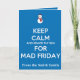 Bleib ruhig und mach dich bereit für diesen verrückten Freitag. Der Schneemann ist ein Design im breiten Yorkshire-Dialekt oder Tyke-Dialekt. Ein Muss für den letzten Freitag vor Weihnachten für einen Yorkshire-Mann oder ein Yorkshire-Mädchen für die Weihnachtszeit, die nach T' Tarn für eine Nacht Kunst geht.