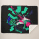 Ein robotisches Skelett mit einem blauen Punk-Mohawk spielt eine leuchtend rosa E-Gitarre, die beim Spielen elektrische Energiewellen abgibt. Der Roboter trägt eine schwarze Lederjacke.