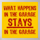 Dieses lustige Design lasse der Welt zu wissen, dass deine Garage heilig ist. Was in der Garage passiert, Bleibe in der Garage! Cooler Not leidender Text Großvatertag oder Geburtstagsgeschenk. Zwei Farben sind verfügbar. PinkInkArt Original!
