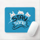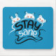 Dieses Design enthält drei seltsame Tierarten mit orangefarbenen Augen - Kaninchen, Bären und Hamster. Der Hintergrund ist aquamarin blau und bildet einen krassen Kontrast zu den weißen Buchstaben der Worte "Bleibe Sane". Die Schrift wird in einem stilisierten, kursiven Schriftart gemacht, der dem Gesamtdesign eine Touch von Eleganz und Raffinesse verleiht. Der Satz "Bleibe Sane" wird prominent angezeigt, was eine Botschaft von Beharrlichkeit und Entschlossenheit angesichts der Widrigkeiten nahe legt.