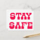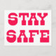 NewparkLane - Postcard mit Bleibe Safe quote in lustiger, roter Stalltypografie. Eine nette Karte, um Ihre Lieben während dieser Corona-Virus-Pandemie Sperrung / Quarantäne-Periode für ein wenig Ermutigung oder einfach zu lass ihnen wissen, Sie denken über sie zu senden.
