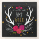 Bleibe Sie wild. Übergeben Sie gezeichnetes Plakat mit Blumengeweihhandbeschriftungs- und -dekorationselementen. Diese Illustration kann als Druck auf T - Shirts und Taschen benutzt werden. | Bigstock® - alle Rechte vorbehalten.