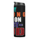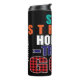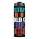 Dieses inspirierende Design enthält den Satz "Bleibe Strong Hold on Trust God" in einem kühlen, gestapelten Schriftart. Die Wörter werden in verschiedenen Farben hervorgehoben, darunter aquamarin, orange, weiß und karierte Farbmuster in Rot und Schwarz. Die Gestaltung ist sehr motivierend und einladend.