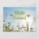Bleibt Gesund bunter Blumen Wiese und blauem Himmel, mit strahlender Sonne