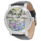 Uhr, Klassische Damenuhr mit schwarzen Lederarmband
