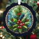 Die Schönheit des farbigen Glases, das in diesem schönen Design mit einem Hauch von festlich tiefroter und grüner Heiliger mit immergrünem Kiefernzweig mit dunkelblau-grünem Hintergrund eingefangen wurde. Zurück bietet anpassbare Hintergrundfarbe und bearbeitbare Textfelder.