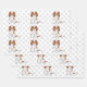 Desteis originelle Cartoon-Illustration einer niedlichen blenheimer Farbe Cavalier König Charles Spaniel züchten Hund. Der Hund wird neunmal auf jedem Blatt platziert. Der Hintergrund weist ein Muster grauer Hundepfoten auf.