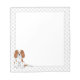 Desteis originelle Cartoon-Illustration einer niedlichen blenheimer Farbe Cavalier König Charles Spaniel züchten Hund, der sitzt. Die Mitte ist weiß, während die Kanten ein Muster von grauem Hundepflaster aufweisen.