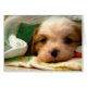 Blenheim Cavalier King Charles Spaniel Welpe unter einer Babydecke.