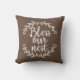 Mit diesem rustikalen Bless Our Nest Throw Kissen können Sie Ihren Country Core ästhetisch weiterentwickeln. Dieses niedliche Akzent-Kissen ist perfekt für Kabinen, Landhäuser, Bauernhäuser oder kleine Häuser. Es hat einen zarten braunen Hintergrund und eine dekorative Schrift, in der es heißt: "Leere unser Nest" und weiße botanische Laubakzente auf dem oberen und unteren Rand der Typografie.