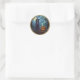 This whimsical sticker features a serene witch in a purple robe and hat standing in a spooky forest, hands clasped in prayer beside a glowing jack-o’-lantern with swirling mystical energy. Finished in a oil paint art print.