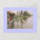 Vintage Wasserfarbe einer Frau, die aus einem Schuppen auf einen Kanal schaut. Schöne Kunst des schwedischen Malers Carl Larsson