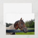 Ein Pferd hält sich den Kopf über den Zaun und sieht den Betrachter seitlich auf einer friedlichen Ranch in Florida an. Große Pferdedesigns für alle Pferdefans! c) Susan L. Marsh