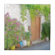 Strandfarbener Blick auf die Straße mit bunten Blume, Türe und Steinmauer in Zypern