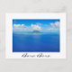 Postkarte mit Luftbild über die tropische Bora Bora Insel mit türkisfarbener Lagune im Pazifik bei Tahiti in Französisch-Polynesien mit weißer Grenze und dem Text: "Bora Bora".