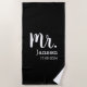 Op zoek naar een blijvend huwelijkscadeau mannen? Dit stoere en luxe strandlaken is niet alleen functioneel maar ook heel mooi! Kortom het perfecte cadeau voor de bruidegom! Geschikt als huwelijkscadeau voor vrienden, huwelijkscadeau voor je man of persoonlijk huwelijkscadeau. Dit is gewoon een leuk huwelijkscadeau, een blijvend huwelijkscadeau dat je helemaal kunt personaliseren! Dit strandlaken is zwart met witte letters en kun je voorzien van zijn achternaam en de trouwdatum.