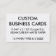 Papiersorte: SIGNATURE UV MATTE18 pt Dicke/ 325 GSMSignature UV Matte ist eine helle weiße Karte mit einer UV-Beschichtung, die eine zusätzliche Schicht Schutz. Auf diese Schutzhülle kann geschrieben werden, und das Papier ist dicker und steifer als die Standardmatte. Die Unterschrift UV Matte ermöglicht qualitativ hochwertige und langlebige Designs mit robustem Farbdruck und hohen Details. Bedruckt und hergestellt in den USA. Die Unterschrift UV Matte ist mit quadratischen oder abgerundeten Ecken erhältlich.