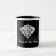 Die Kaffee-Tasse, die in Schwarzweiss mit einem Diamantdruck und -text gezeigt wird, der "Bling sagt, ist meine Sache. Fertigen Sie diese Tasse besonders an oder kaufen Sie, wie ist.