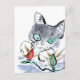 Blinkend, Blinkend... Das graue Kätzchen ist sehr verwirrt über die rot-grünen blinkenden Weihnachtsbeleuchtung für den Urlaubskörper. Sumi-e, japanischer Stil Tinte in Farbe. Künstlerin Ellen Miffitt @ Nine Lives Studio